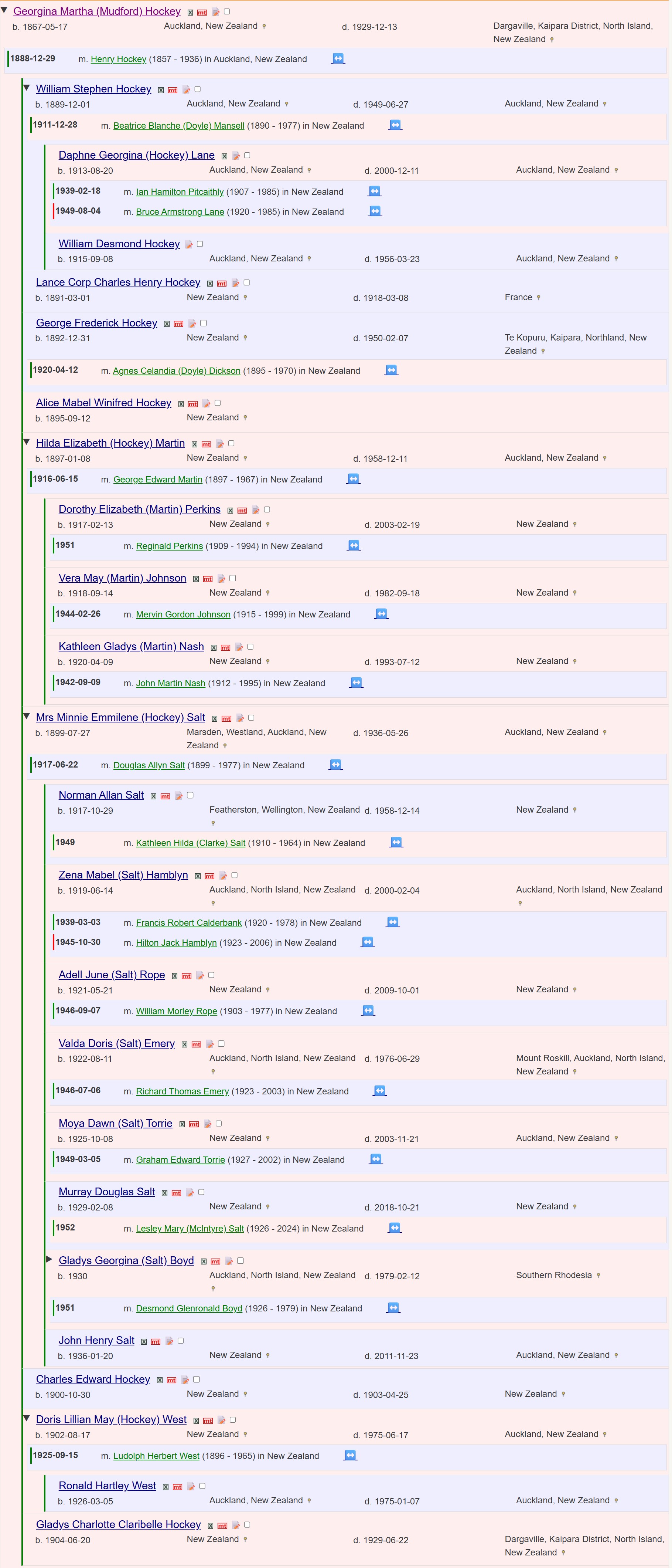 Georgina Martha (Mudford) Hockey was born the 17'th May 1867 and died on 13'th December 1929 and is buried at Mount Wesley Old Cemetery, Dargaville.